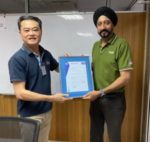 Danny Ng (L) MD of DQS Malaysia hand over the ISO 13485:2016 certificate to Mr. Ravinder Singh (R) the MD of Ansell Seremban.