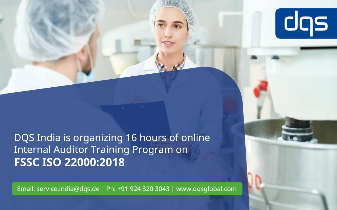 DQS India is organizing 16 hours of online Internal Auditor Training Program on FSSC ISO 22000:2018